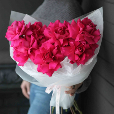 Состав: Роза Нина ричи - 6шт Роза Мондиаль - 5шт Упаковка корейская пленка, лента атлас.